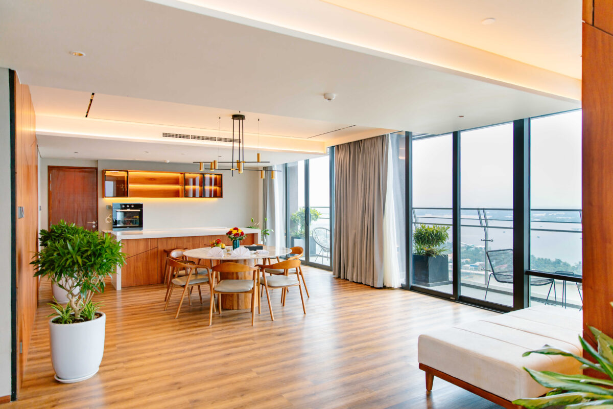 Total room size 68m2, a spacious living room decorated utility space harmonize the sunlight and fresh breeze of Mekong. The room also can conjunction to connecting room to create a family room.