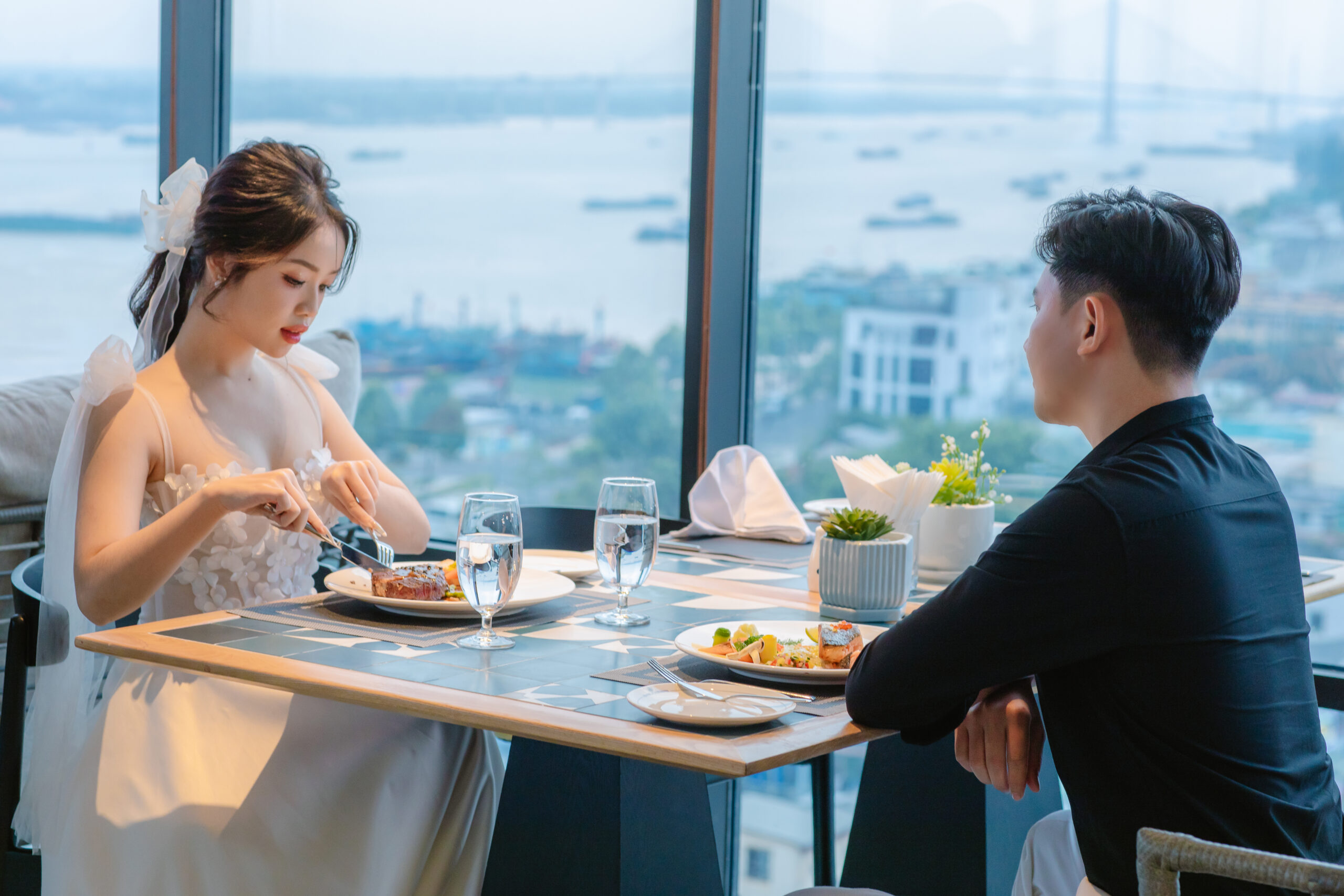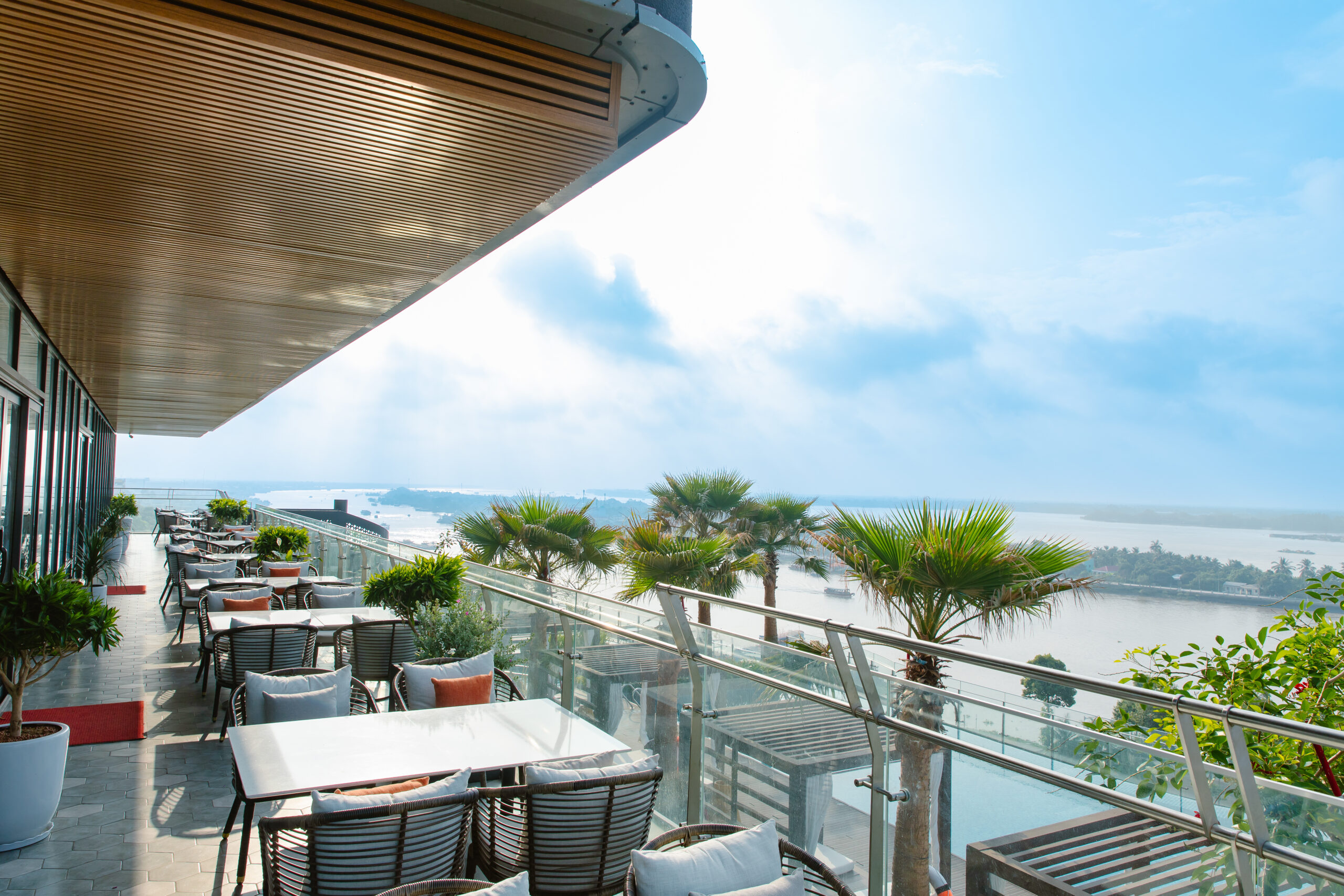ALLUVIA restaurant is located on the 8th floor of the Central Plaza My Tho building, a perfect location for dinning with viewing to the poetic Tien river and iconic of My Tho city – Rach Mieu bridge.