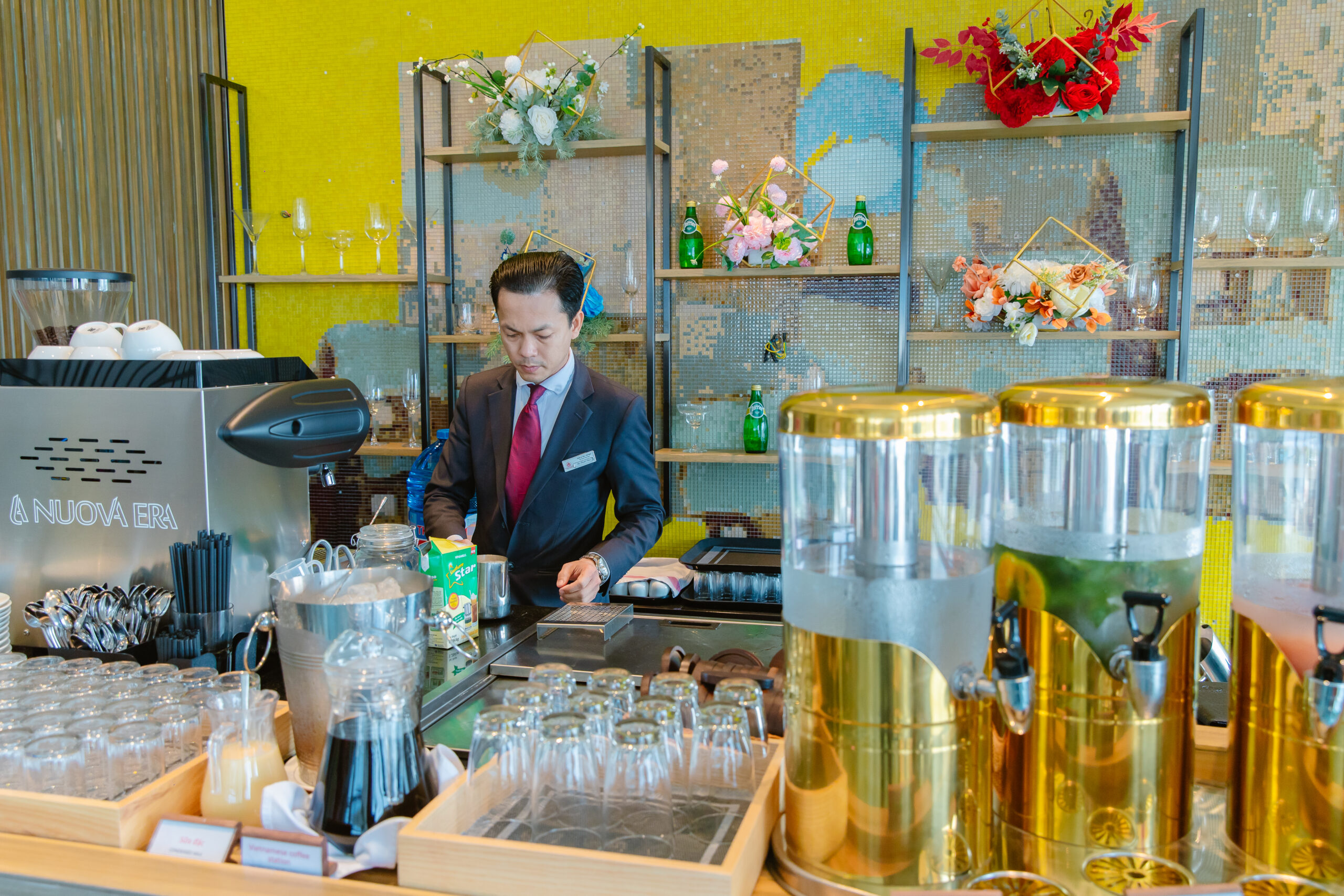 Inspired by the vast rice fields of the Mekong Delta, the restaurant has a warm mature fields color, marked with details of countryside, and dory. The harmony of luxurious, modern and warmly hospitality.