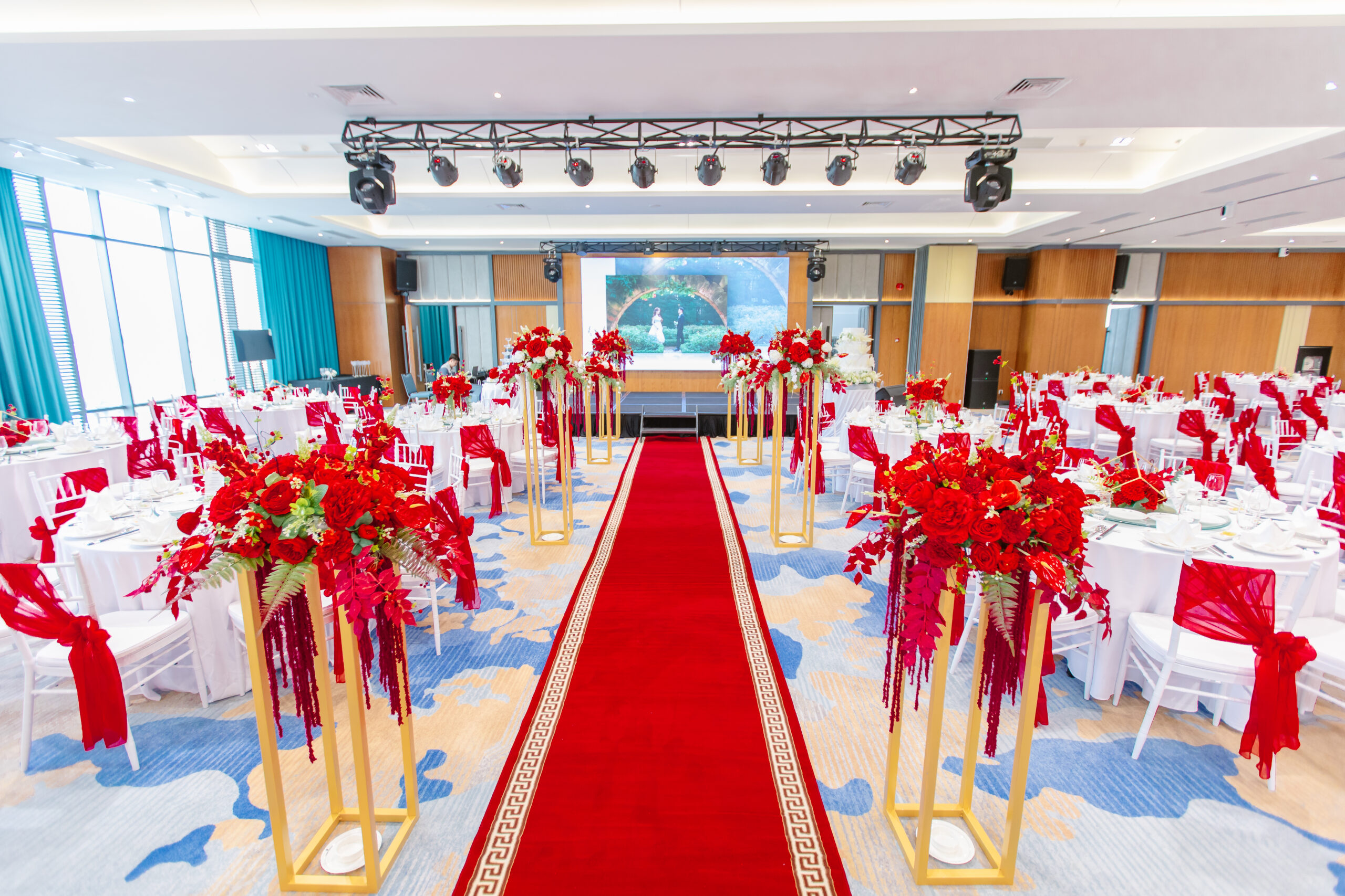 The wedding hall at Central Plaza Mỹ Tho is built to industry standards, equipped with modern amenities, and supported by a professional team committed to ensuring a seamless and unforgettable wedding experience. Couples can choose their preferred themes, color palettes, floral arrangements, luxurious decor, and the most prestigious stage in My Tho to make their special day truly unique.